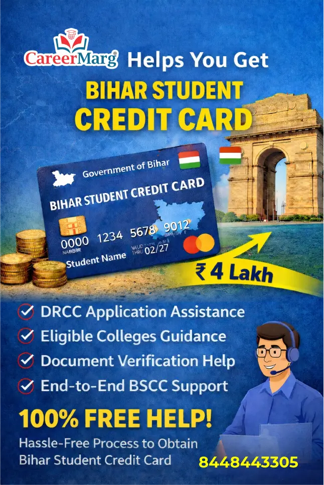 The Bihar Student Credit Card Scheme (BSCC) is one of the most important Bihar government schemes for students after 12th. It provides an education loan of up to ₹4 lakh to help students pursue engineering, diploma, B.Tech, MBBS, nursing, BBA....